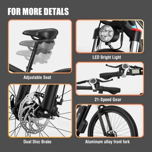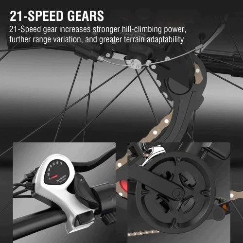 Powered by a robust 48V 750W brushless motor, this electric mountain bike provides strong acceleration and a top speed of up to 15 mph unlockable, making it ideal for both city rides and challenging terrains.