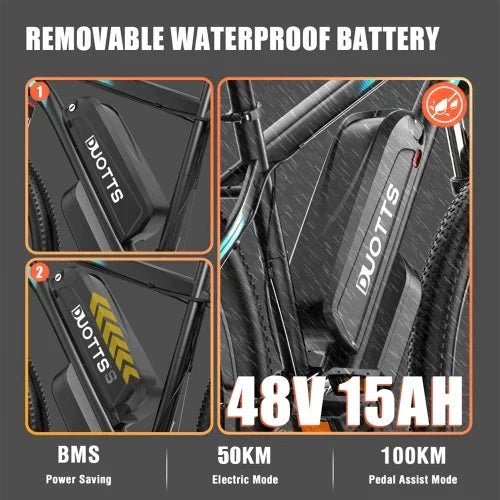The DUOTTS C29 Pro offers three riding modes: Ride Mode, Assist Mode, and Pure Electric Mode. Whether you’re looking for a traditional biking experience, a boost with pedal assistance, or full electric power, this bike adapts to your riding needs and environment.