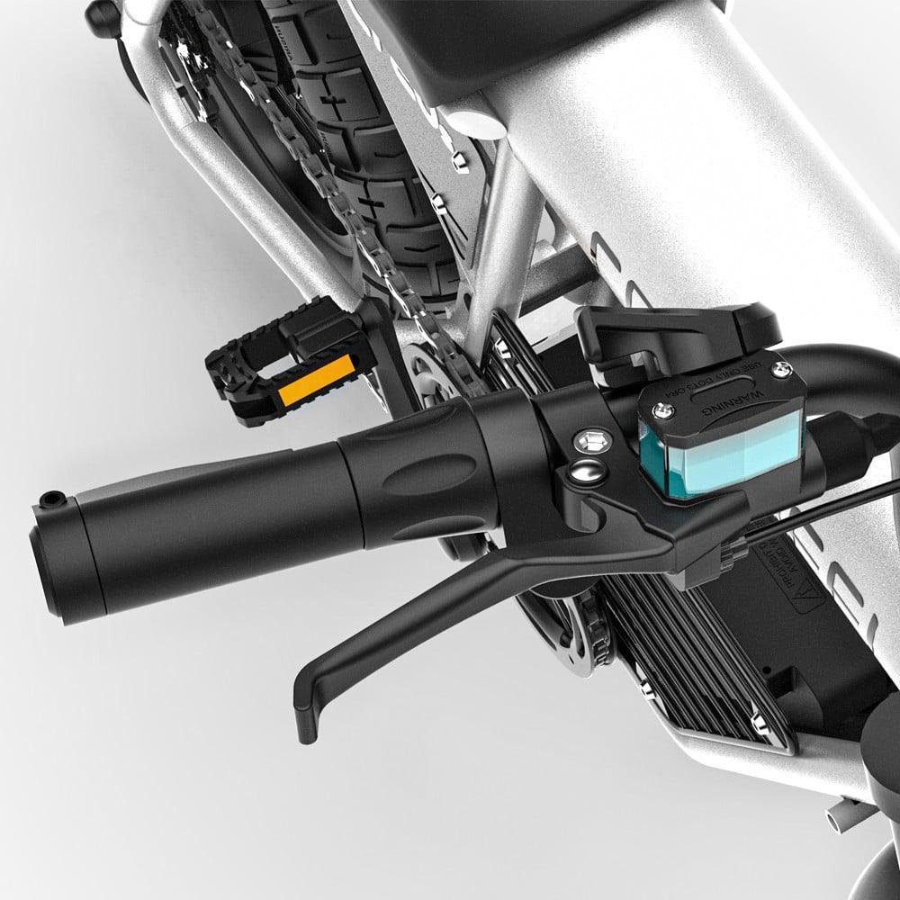 Front and rear motorcycle-level dual-piston hydraulic oil brakes, COSWHEEL CT20S e-bike is equipped with 180mm high-quality brake discs, making your riding safer.
