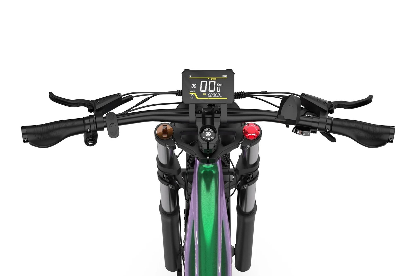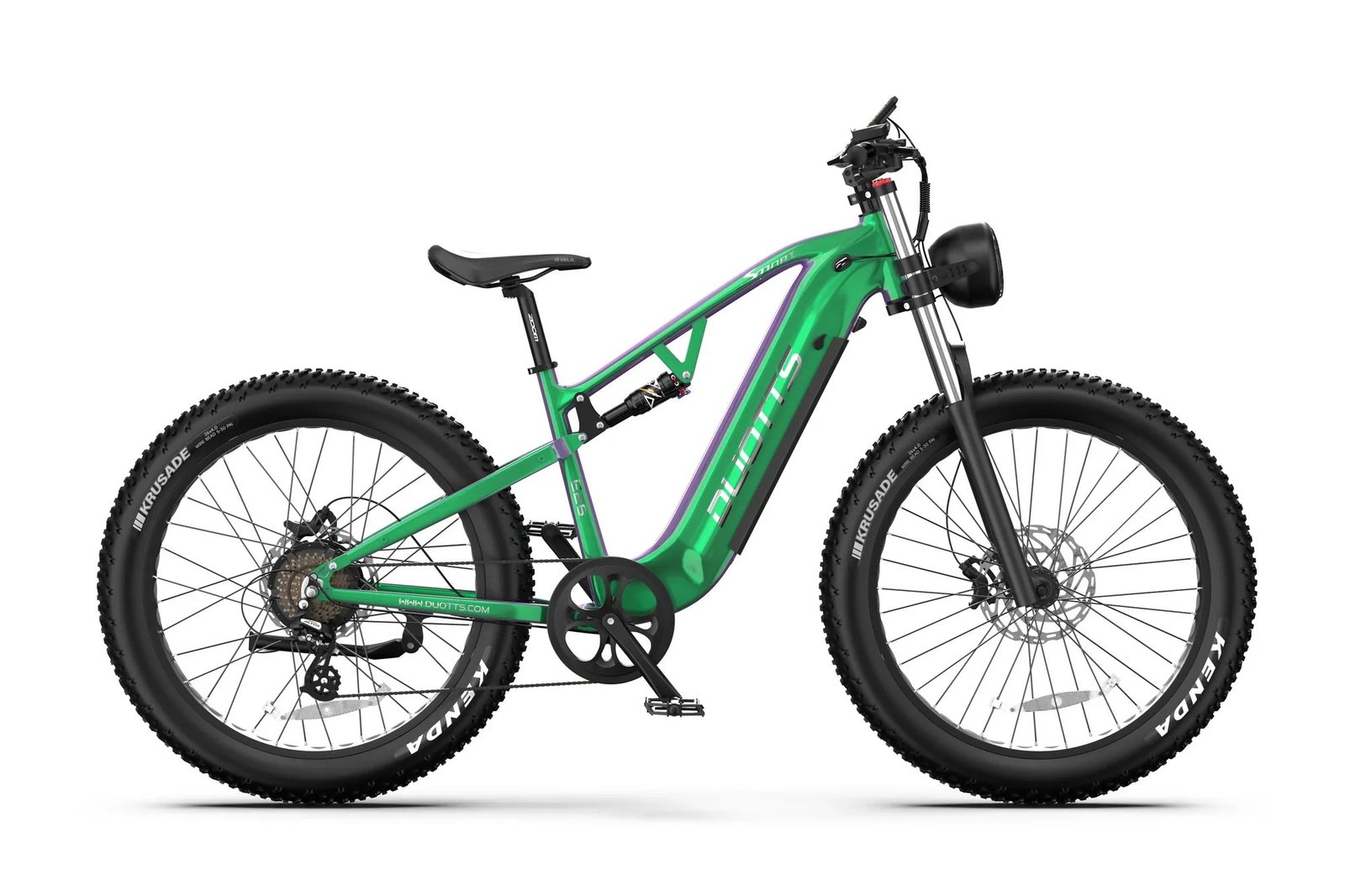 The E26 features a full aluminum alloy frame that is not only durable and lightweight but also equipped with a unique color-changing finish. Under sunlight, the frame shifts between vibrant blue(green) and purple hues depending on the angle of the light. This design not only enhances its visual appeal but also gives the bike a dynamic, futuristic look, making it stand out on the road.